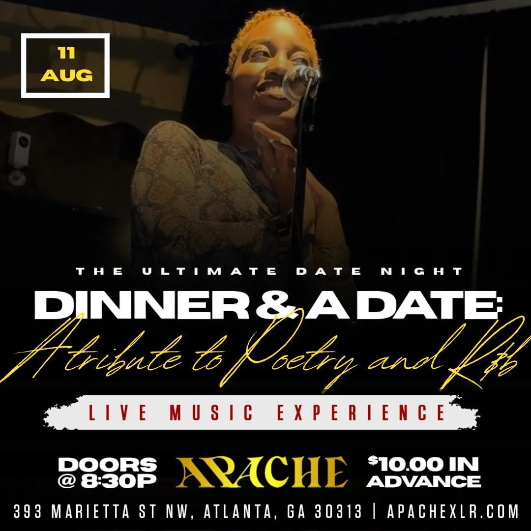 Dinner and a Date @ Apache XLR Sunday, August 11, 2024 8:30 PM 11:55 PM Atlanta, GA (map) Google Calendar ICS